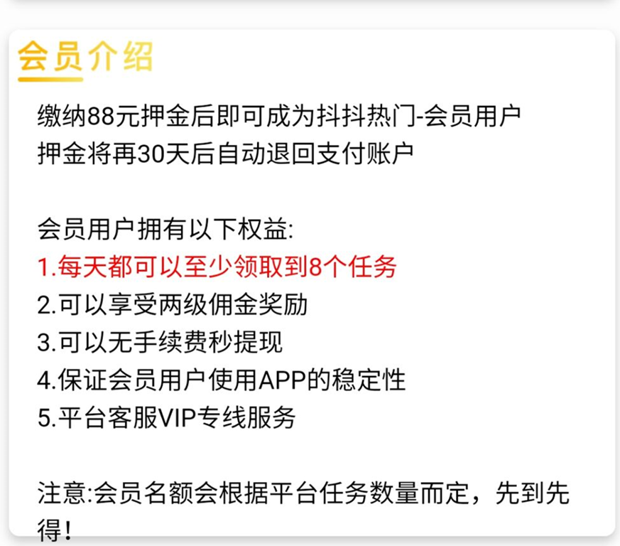 《抖音点赞 》- 1元一条 ,当天收益8元,工资日结,提款秒到账! 2019年8月1日15:36:17 发表评论 4,883 次浏览 抖音点赞 1元一条,当天收益8元,全网就10000个会员名额,抓紧行动起来 ! 需要支付88元成为会员,介意勿接,88元会员押金再30天自动退回支付账户。 任务一条一元,提现秒到账。 这个需要成为会员才能接单,一天8个任务就是8元,一个月就是240元,押金88。 在你成为会员的一个月后原数返还。 每天点赞收入8元,提款秒到账! 微信立即扫码,加入抖抖热门,开启每天赚8元轻松之旅! 说明: 88元会员押金再30天自动退回支付账户,不过工作点赞活很轻松,花不了几分钟时间每天赚8元! 收款图: 赞 0 赏 分享
