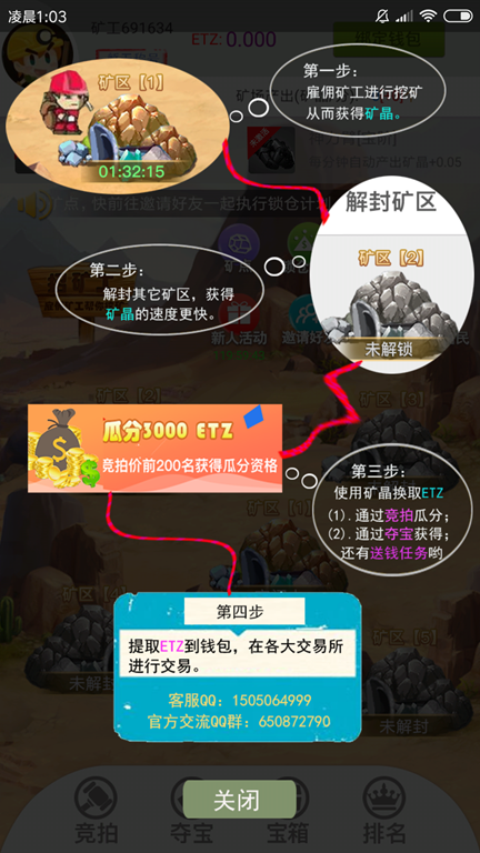 (1)解封矿区[2],方可参与竞拍(竞拍排名越高,获得ETZ就越多哟)。