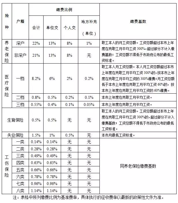 深圳市社会保险缴费比例表(单位职工)