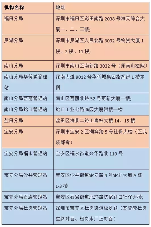 深圳市各社保机构地址一览