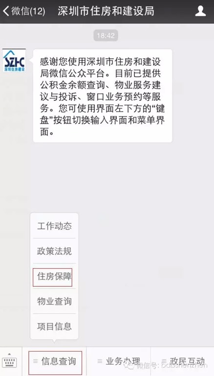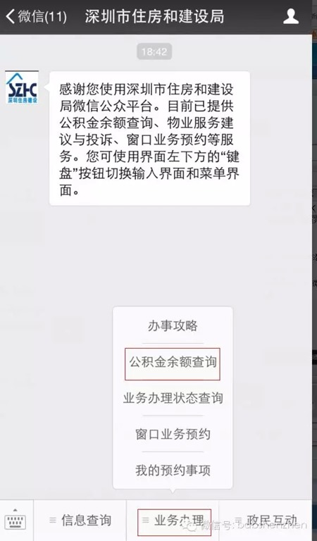 方法一:关注深圳市住房和建设局微信服务号