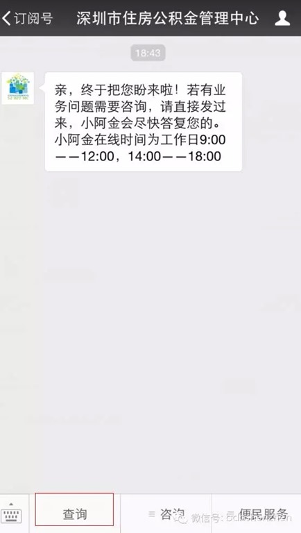 方法二:关注微信认证订阅号:深圳市住房公积金管理中心