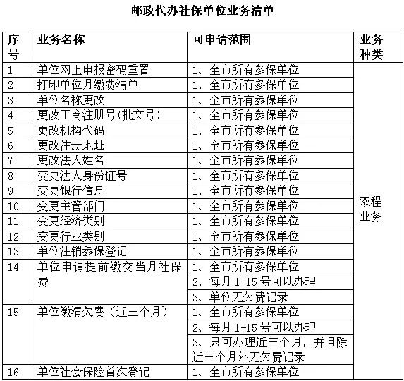 目前,“邮政代办社保”已经开办了32种业务,其中单位业务16种,个人业务16种。