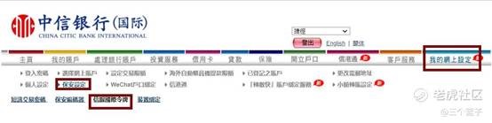 第一步:“我的网上设定” -安保设定-信银国际令牌