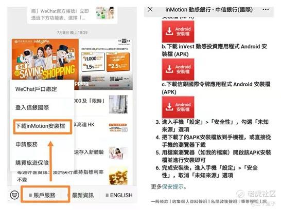注: 苹果手机也可从apple store下载;安卓手机也可从Google Play或“信银国际”公众号等渠道下载。安卓手机建议从公众号下载,下载路径: