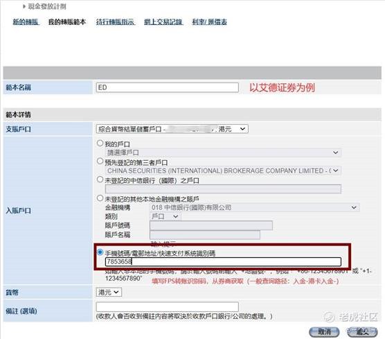 20多家券商支持中信FPS转账,但中信港卡每天FPS限额1万港币,通过建立范本可以提高到5万港币。建立范本流程如下: