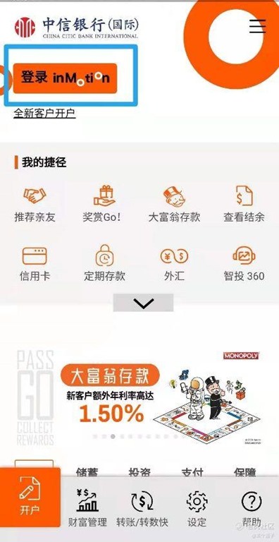 手机银行名称“inMotion”可在应用商店、 “信银国际”公众号等渠道下载。