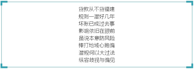 “上海的银行凭啥拒绝给福建人贷款?”早前宁德地区的3522开头身份证被爆在大部分银行都不允许办理信用贷款和信用卡,这已是银行业不成文的规矩。只因周宁籍商户前两年在长三角发生的钢贸信贷危机。