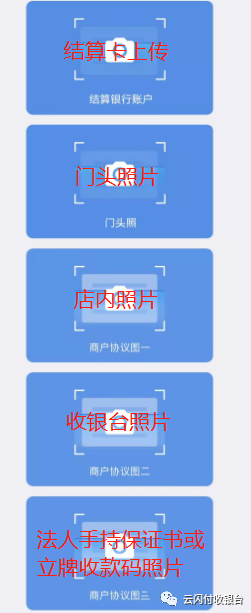 2.小微商户需要上传资料:身份证+银行卡+门头照片+店铺内景照片(上传到商户协议二)法人手持保证书或立牌收款码在店铺内/收银台前的照片(上传到商户协议图三);