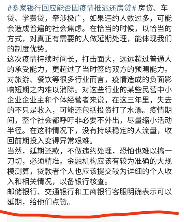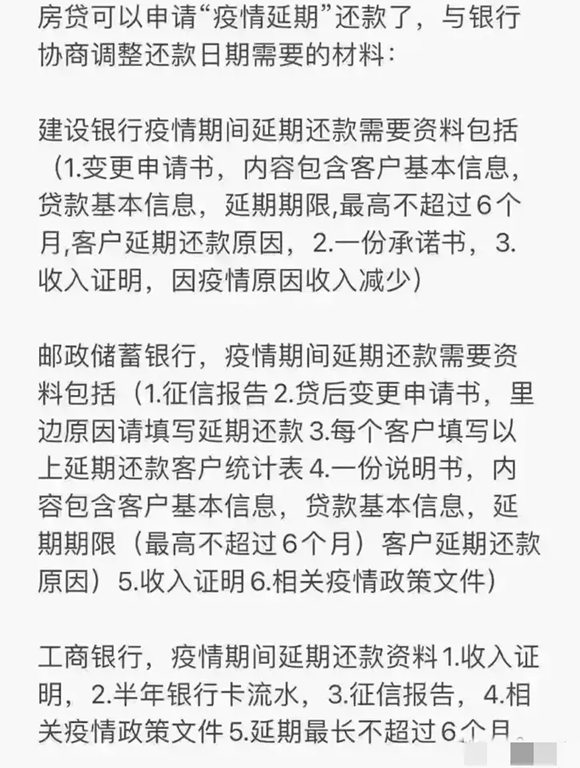 国内工商银行建设邮政银行交通银行在疫情期间房贷可以延期还款