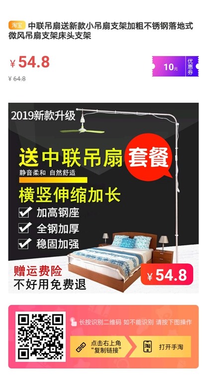 中联吊扇,送新款小吊扇支架加粗不锈钢落地式微风吊扇支架床头支架,原价64.8,【券后价】54.8元,价格实惠,带遥控器,静音风力足! 2019年7月11日16:11:00 发表评论 4,715 次浏览 中联吊扇,送新款小吊扇支架加粗不锈钢落地式微风吊扇支架床头支架,带遥控器,稳固加强,静音风力足! 【价格】64.8元【券后价】54.8元 --------走着 ,(MoVGY6ty3cH),打开(Tao)即可 手机浏览器扫码,支持Tao扫码,马上购买中联吊扇带回家,带遥控器,静音风力足! 赞 0 赏 分享