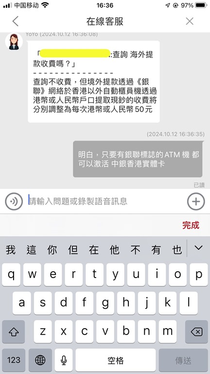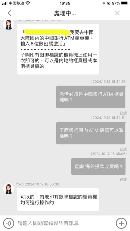 中银香港银行实体卡国内激活