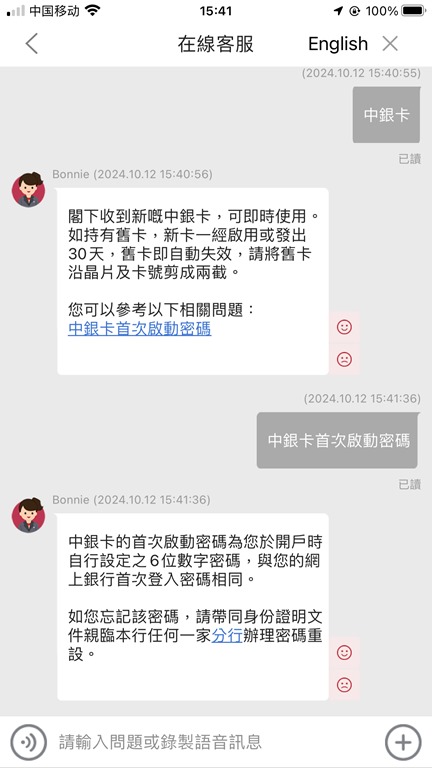 還有,這個中銀香港實體卡怎麼激活?