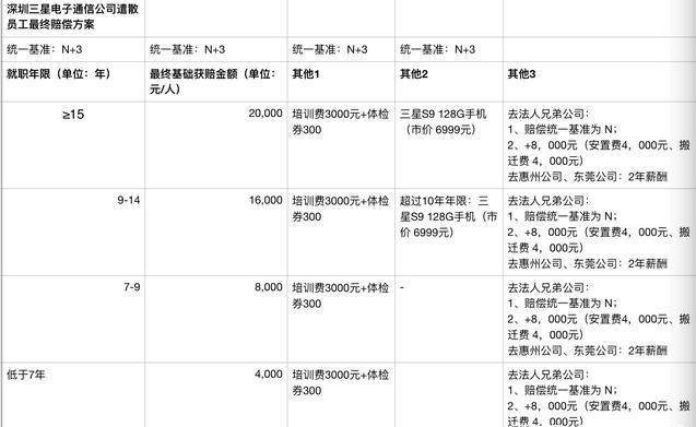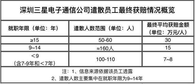 从上表中可以看到,三星深圳工厂的工人非常稳定,大部分都工作满了9年以上,最低赔偿7万8万,工作年限高的最高30万每个人。