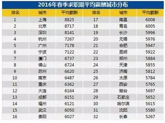 那么上海8825元/月,