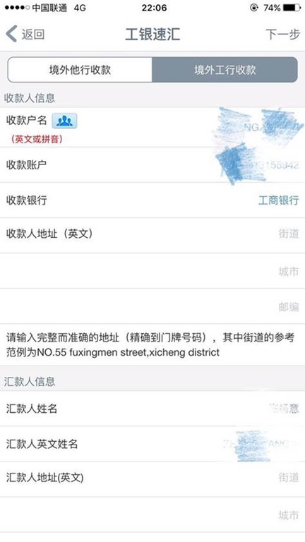 b.收款人地址及汇款人地址需要写英文,汇款人地址一定要跟当初开户时候的地址一样。