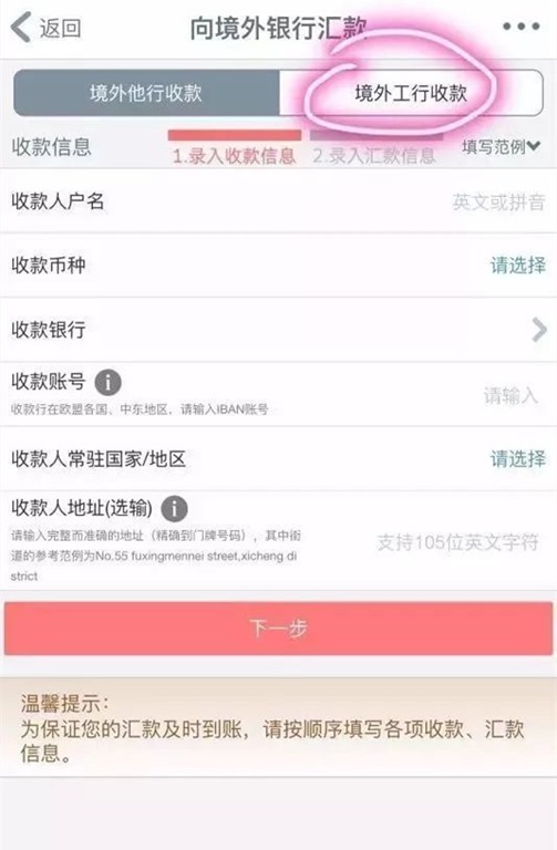4、使用手机银行工银速汇业务汇至工银亚洲