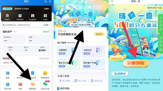 免费开通数字身份(一个反诈骗功能业务)可领取500积分!