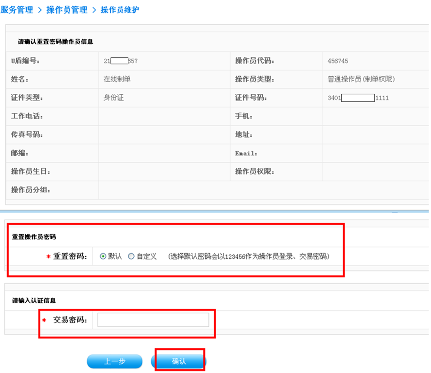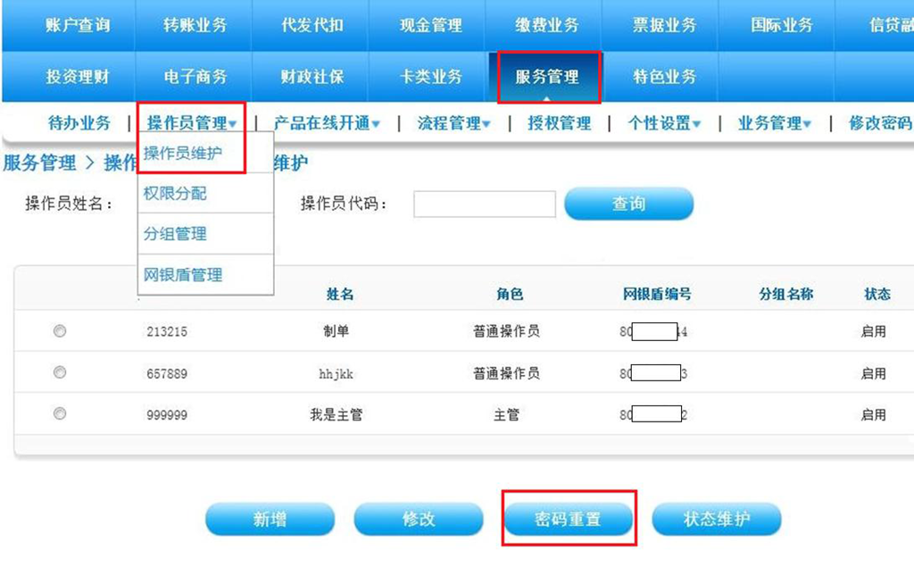 主管初始登录密码和交易密码为 999999,制单和复核的登录密码和交易密由主管设置。