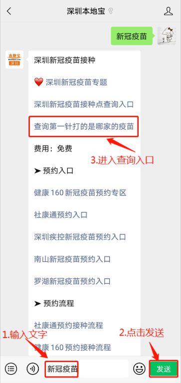 在深圳本地宝微信对话框发送【新冠疫苗】即可进入查询入口
