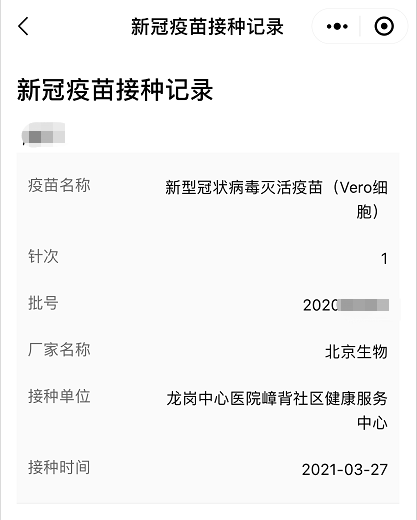 点击【新冠疫苗】即可查看你的接种记录,上面就有写你接种的新冠疫苗的生产厂家哦