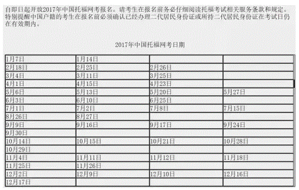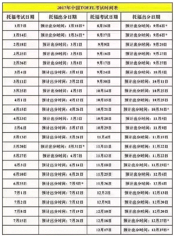 下面是新出炉的2017年托福考试时间表,考生们除了抢考位还要及时备考哦,为大家精心准备的备考攻略,赶紧收藏吧!