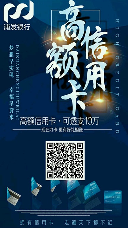 浦发银行给力下卡中~秒批通道快速下卡,超高通过率! 2018年9月23日09:54:56 发表评论 4,921 次浏览 浦发银行给力下卡中~秒批通道快速下卡,超高通过率! 推荐卡种:梦卡之富春山居图,简约白金,青春卡 需要的速度扫码申请。 赞 0 赏 分享