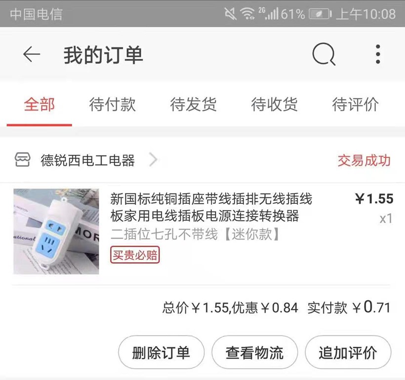 美滋滋,领到淘宝特价版7毛钱购买的排插插座! 2021年5月17日11:24:10 发表评论 3,295 次浏览 美滋滋,领到淘宝特价版7毛钱购买的排插插座! 立即扫码,领取淘宝特价版大福利! 赞 0 赏 分享