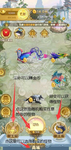 3、采补别人的怪物可以获得金币,30分钟后还会产蛋,蛋孵化以后可以获得怪物;采补可以得动物!