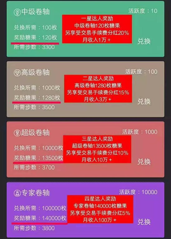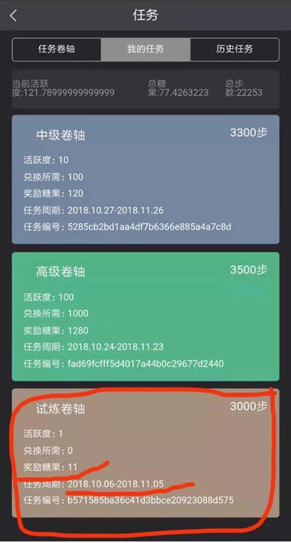 如果选择用1元撬动更多收益,你就需要留10个糖果购买初级任务卷轴,稳固自己的第二个月可以继续获取糖果!因为一但我的任务里面没有任何卷轴,运动将不再产出糖果!