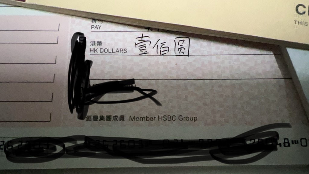 其实还挺常见的,比如房租押金大几万,很多人都会用支票。水务署押金退还给用户也是用支票。