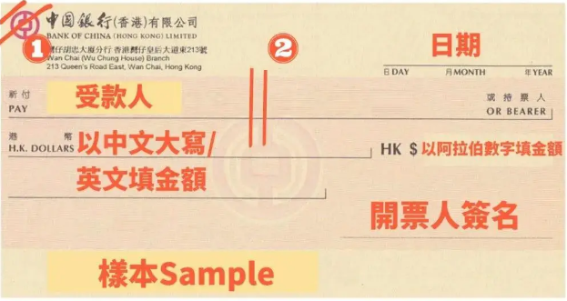 参考香港支票样例如下: