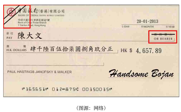 香港使用的最多的是实名记名划线支票,上面会标注收款人姓名、汉字大写金额、数字金额、签名。