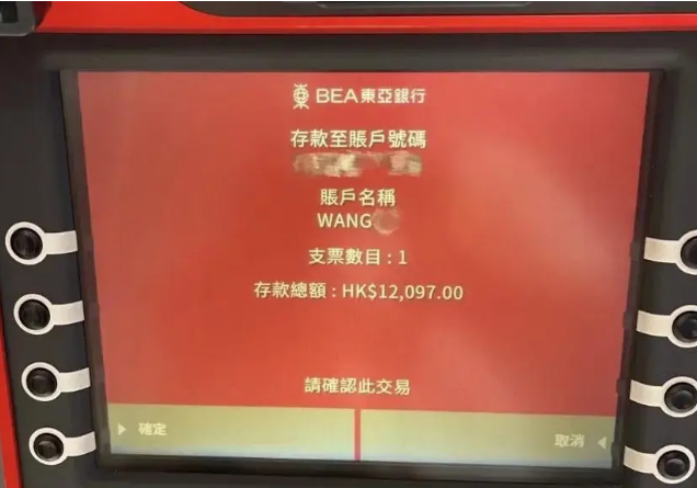 “注意,香港地区的银行把“到账”和“入账”区分开了。支票从“入账”到“到账”存在24小时核账时间。