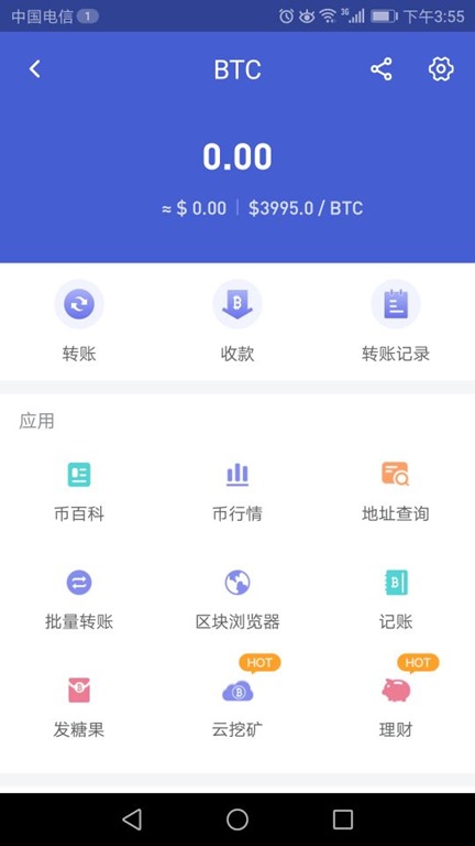 3、每天登录一次领取BTC矿:钱包–BTC–云挖矿