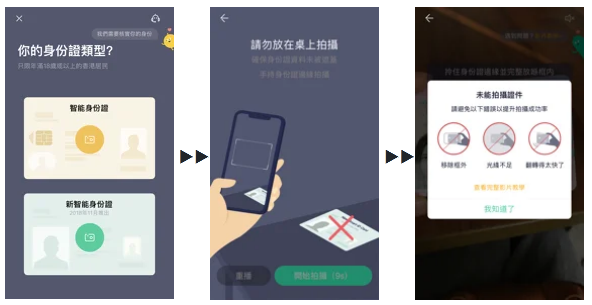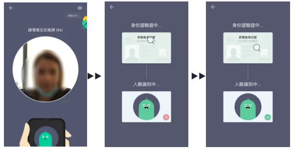 實測時發現,用新智能身份證時,系統會比較難辨認,可能要重覆此步驟幾次才會成功。身份證驗證成功後,就會進行人臉識別。
